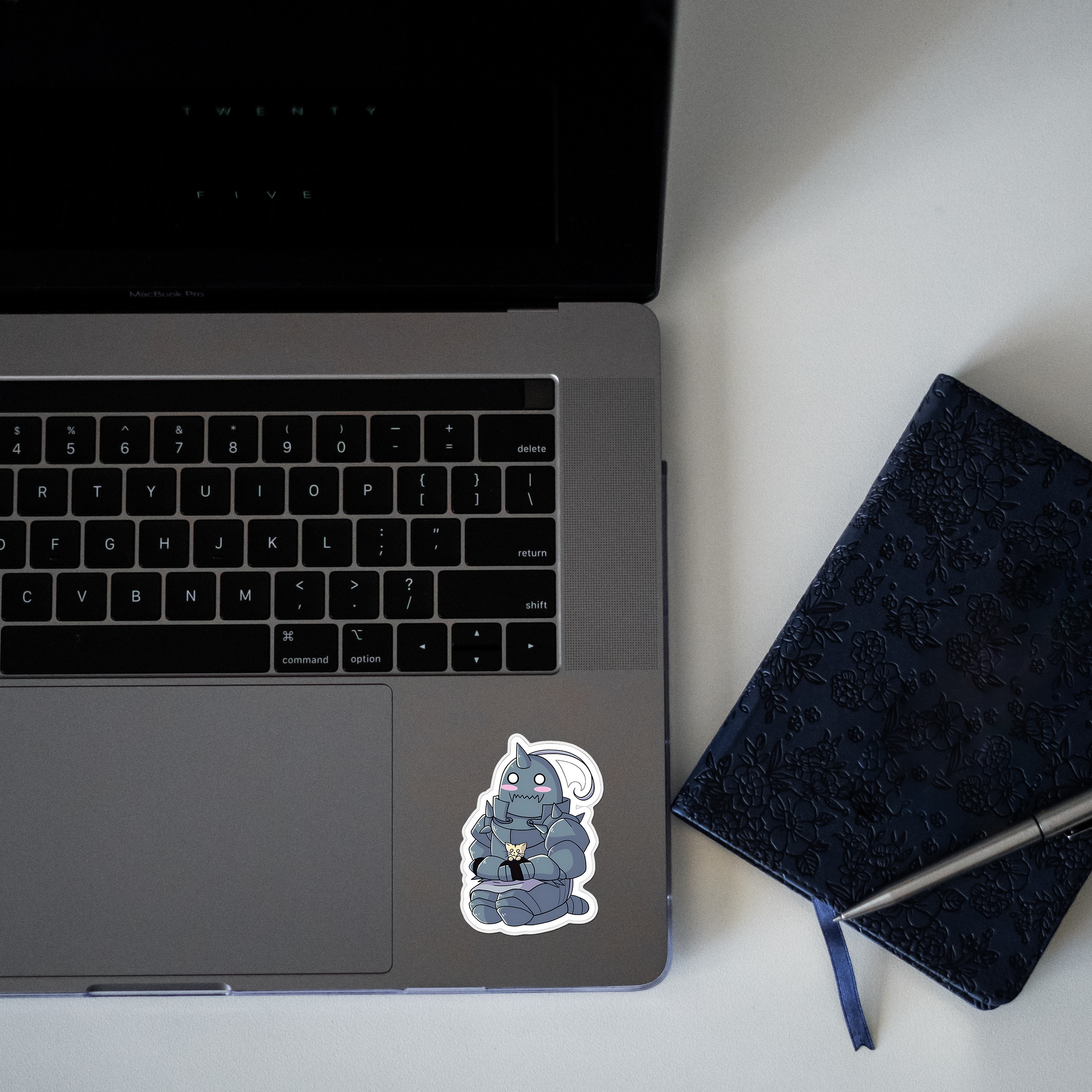Chibi-style Alphonse Elric from Fullmetal Alchemist holding a small cat Sticker
